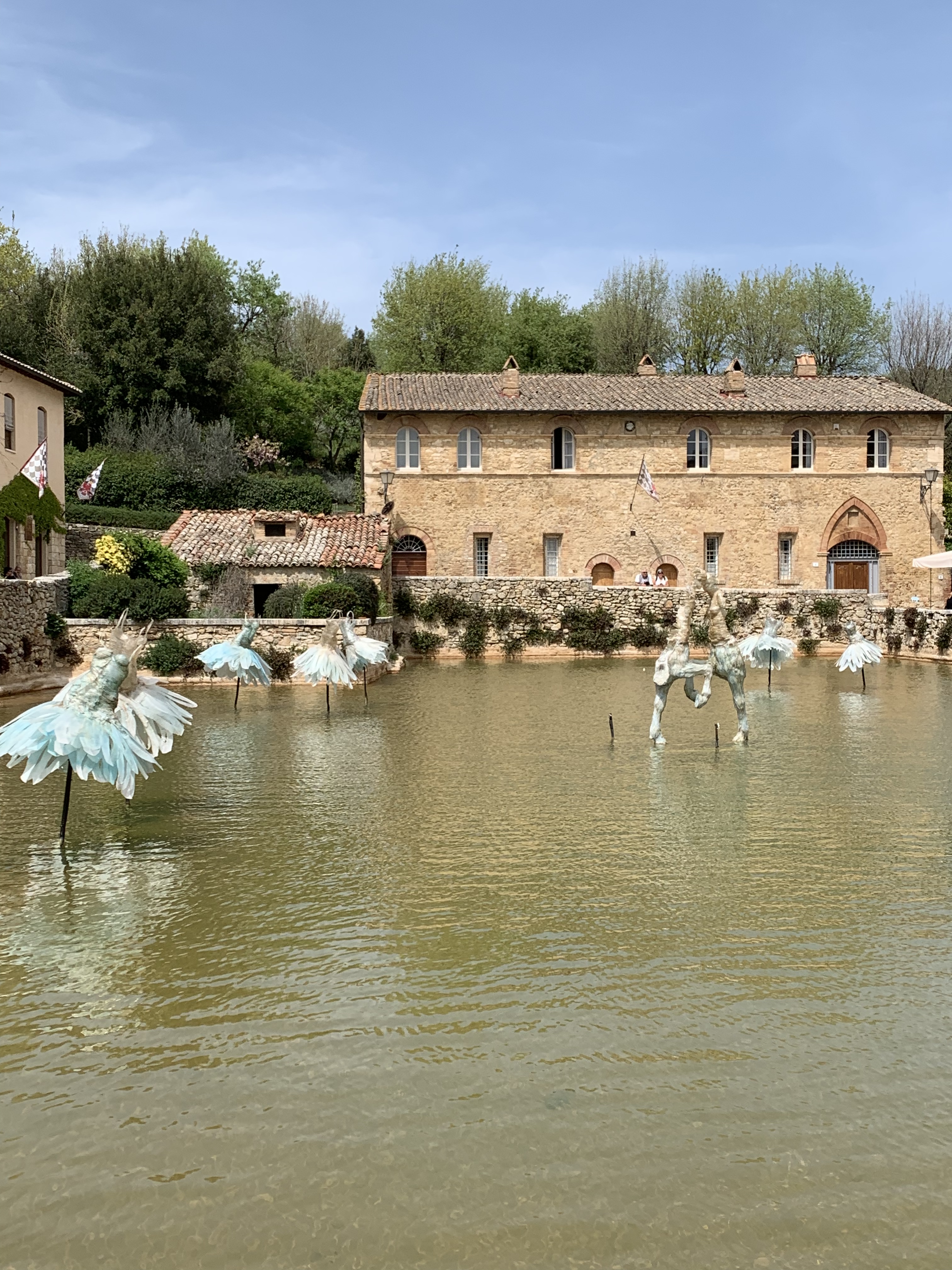 C’è chi dice che il tragitto sia il vero viaggio, è in questo caso non potrei essere più d’accordo perché girare in macchina perché questi paesaggi ti fa restare con gli occhi spalancati attaccati al finestrino… ma eccoci arrivati alla prima tappa a Bagni Vignoni, un piccolo paradiso nel cuore della Toscana, un posto magico dove il tempo si è fermato ad anni fa….
