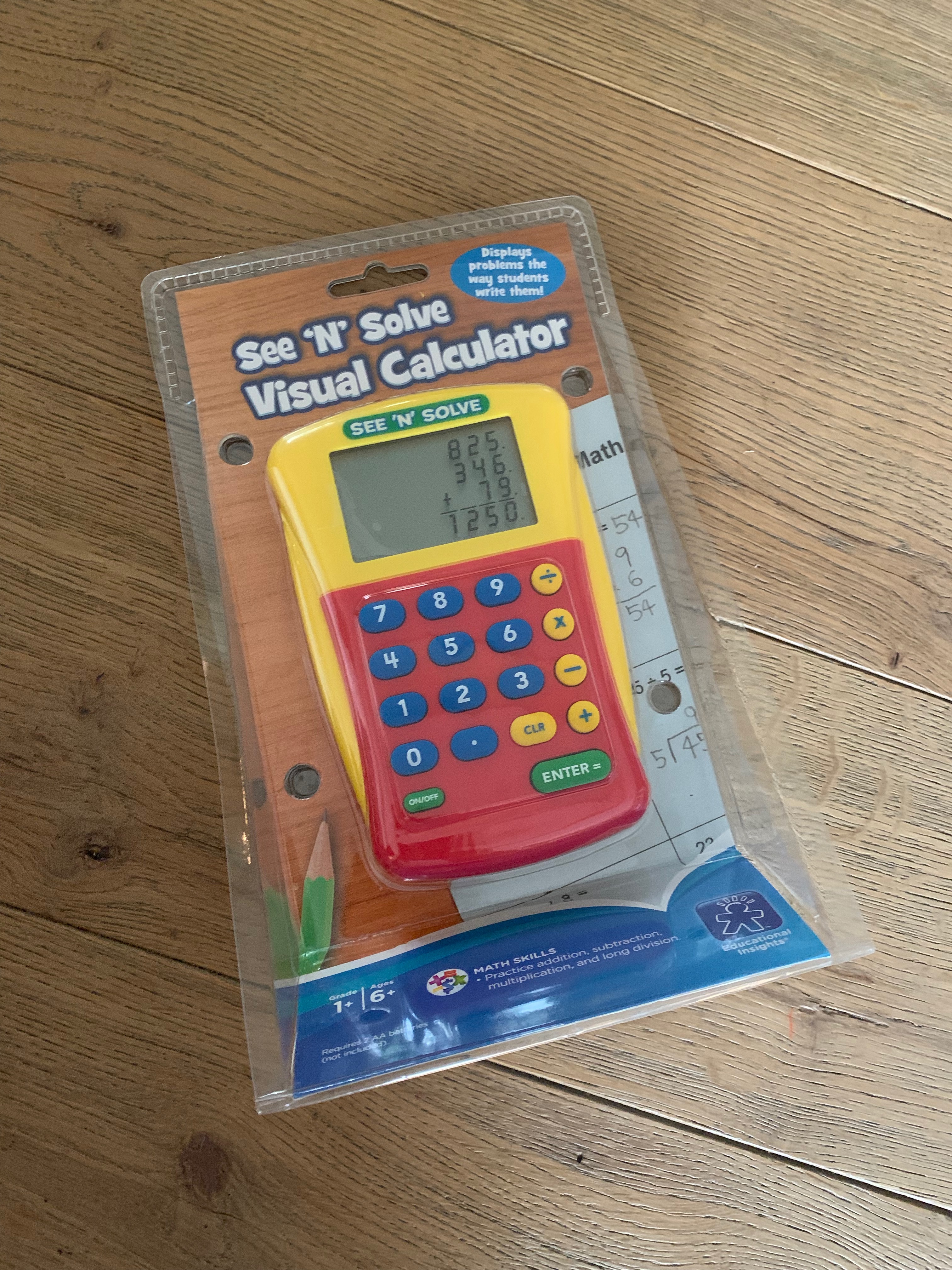 sicuramente tutte le calcolatrici vanno bene, nessuna è migliore di un’altra, ma essendo Edo un bambino fatto a modo suo, ho cercato la calcolatrice più semplice in assoluto, ed ho trovato questa, che oltre ad avere solamente i tasti base ha anche uno schermo abbastanza grande da poter mettere le operazioni in colonna. Volendo c’è anche la versione che aiuta a risolvere anche le frazioni.